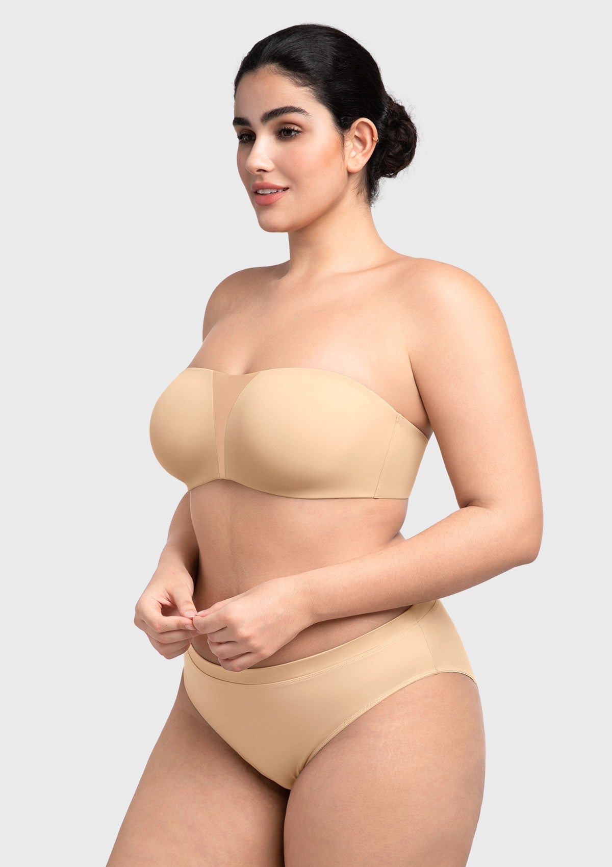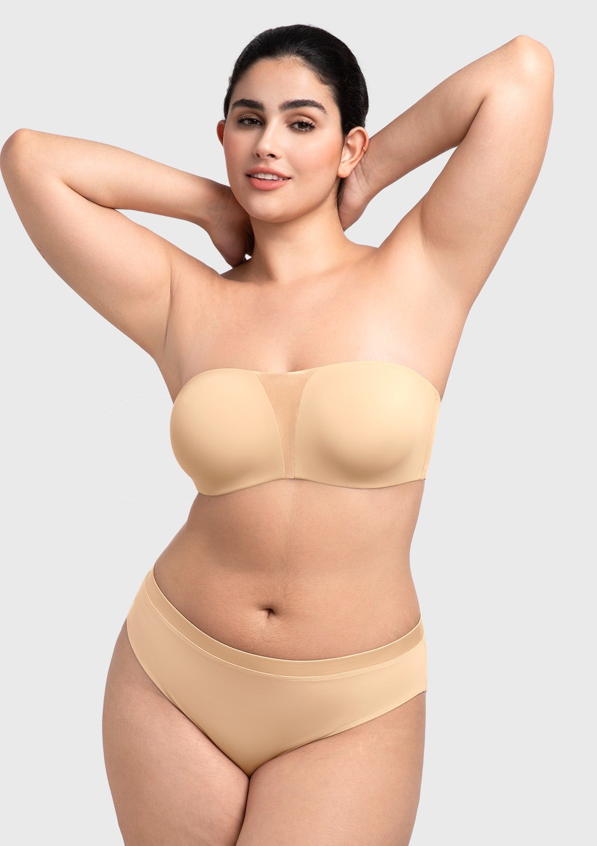 Fiery Unlined Seamless Comfort Underwire Plus Size Bandeau Strapless Coffee Bra