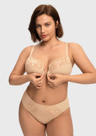 HSIA Anemone Unlined Plus Size Front Closure 3/4 Cup Underwire Back Support Bra Lace Trim for Sculpted Lift Womenswear