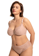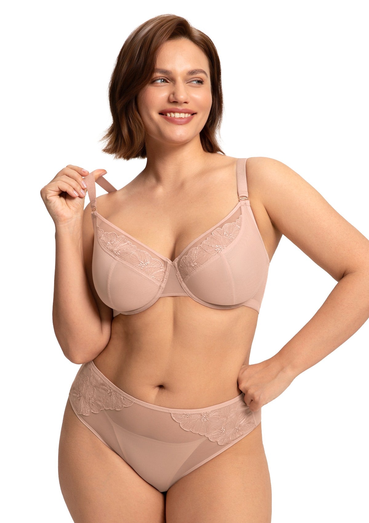 Experience the perfect harmony of romantic aesthetics and heavy-duty support. Specifically engineered for fuller figures (C to I cups), the Yumi unlined bra offers the alluring look of sheer mesh with the powerful lift you need. Beneath its delicately shimmering Poppy embroidery lies a multi-layered rigid mesh lining that naturally sculpts your curves—delivering an elegant, breathable fit without the bulk of thick padding.