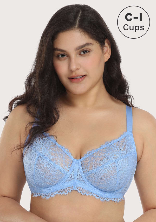 HSIA Blossom Unlined Storm Blue Lace Bra Set