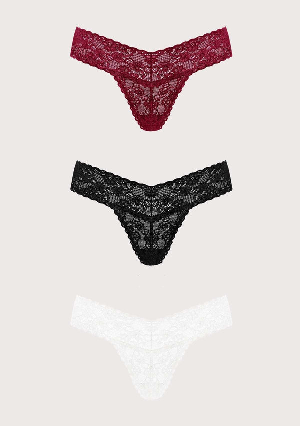 Pretty In Petals Breathable Sexy Lace String Thongs 3 Pack