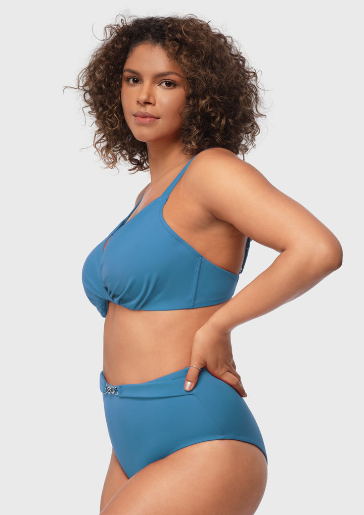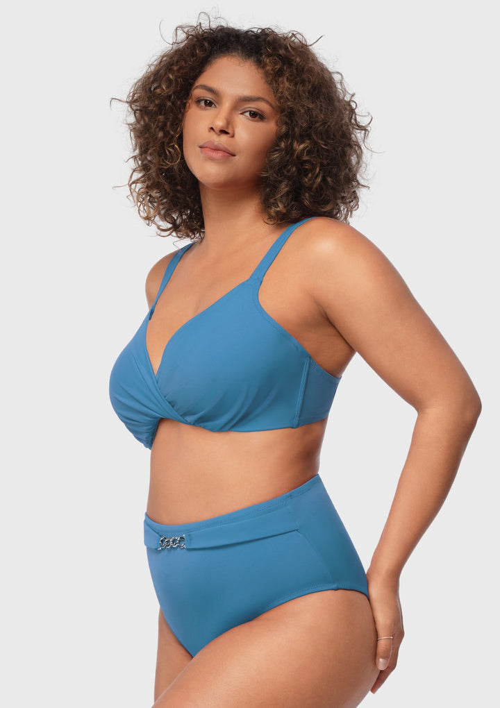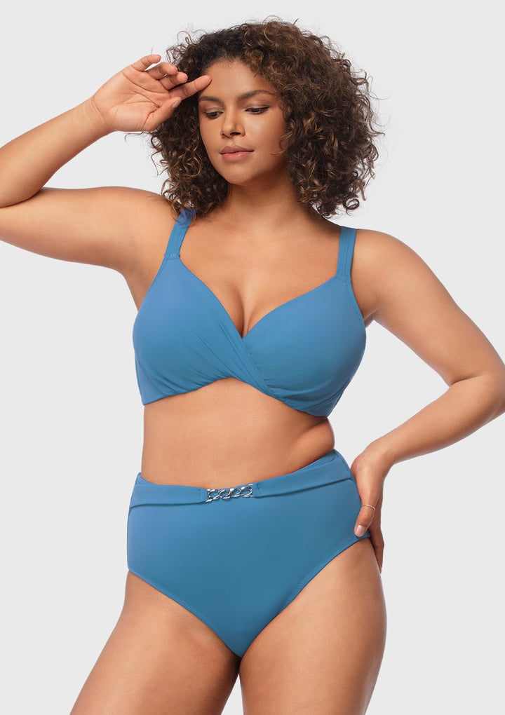Experience the ultimate blend of support and comfort with our latest two-piece swim bikini. Just like our beloved bras, this swimwear features underwire cups that provide exceptional support while ensuring your comfort.  The addition of a ruched crisscross front design adds a touch of allure to your swim style.