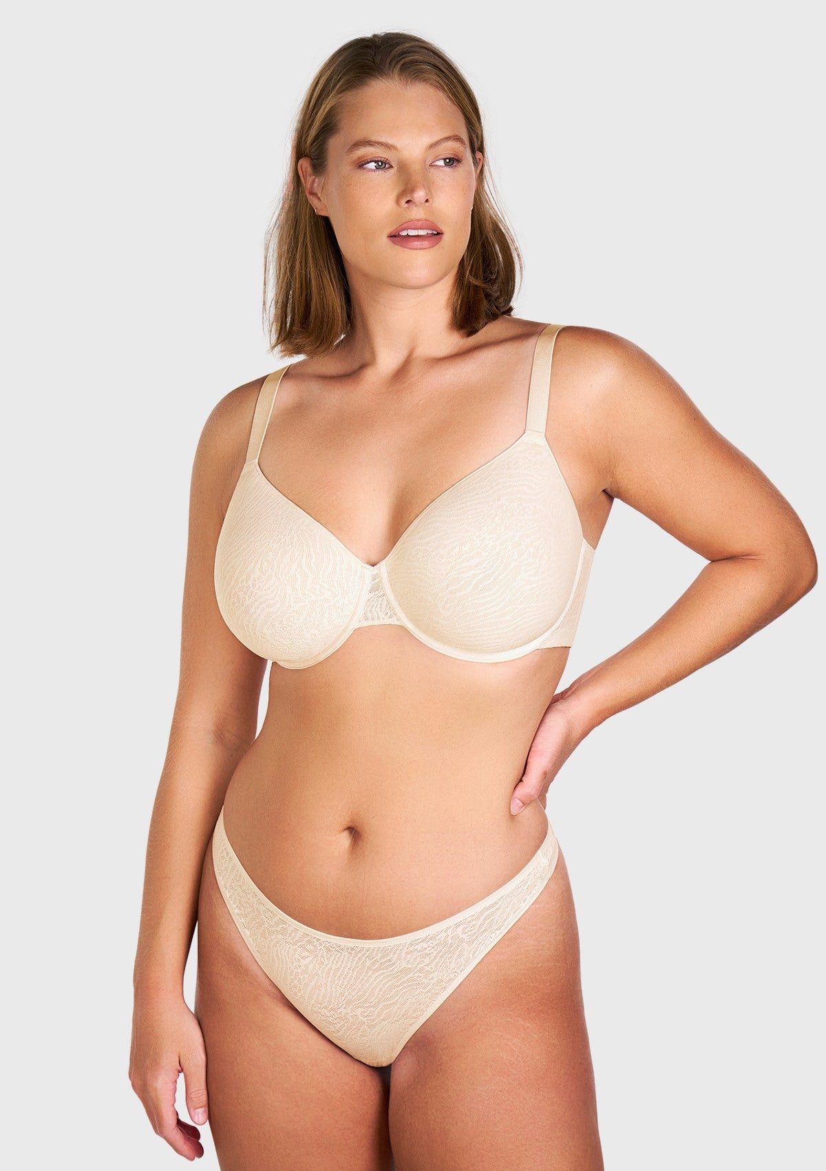 Here is the sexy thong for an extra charming look that matching with AirMesh Lace Detail Mesh Lightly Padded Full Coverage Underwire T-Shirt Bra, made with a stylish pattern stretchy mesh for maximum comfort. Line-free under clothes.