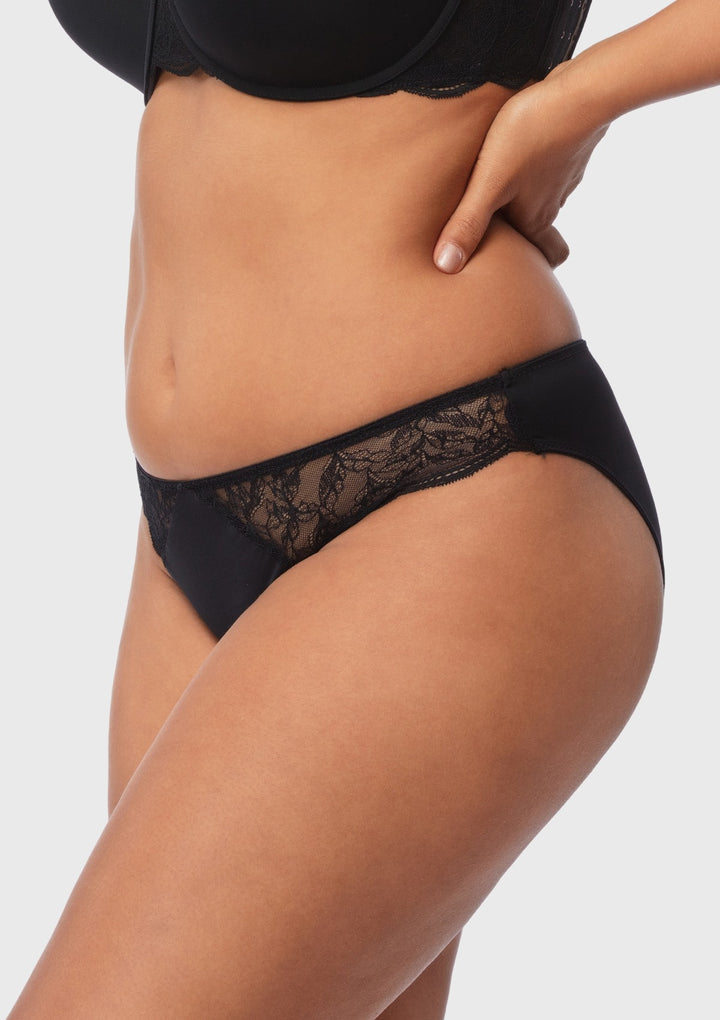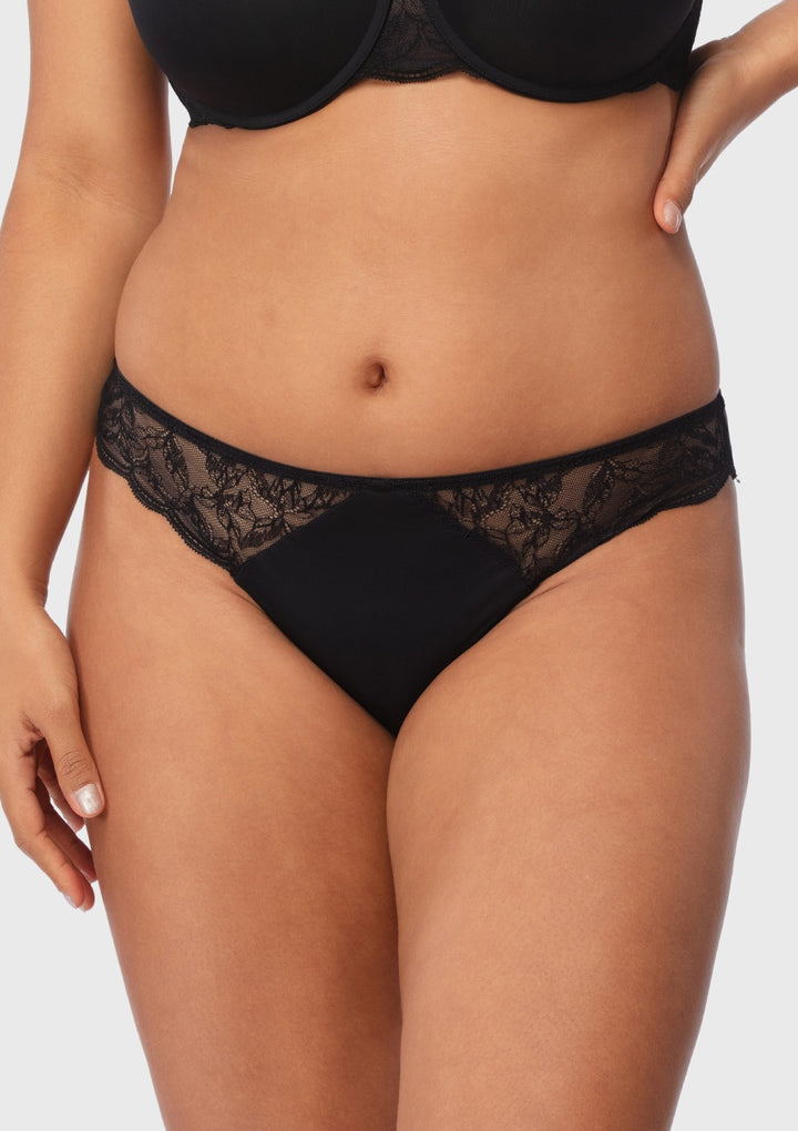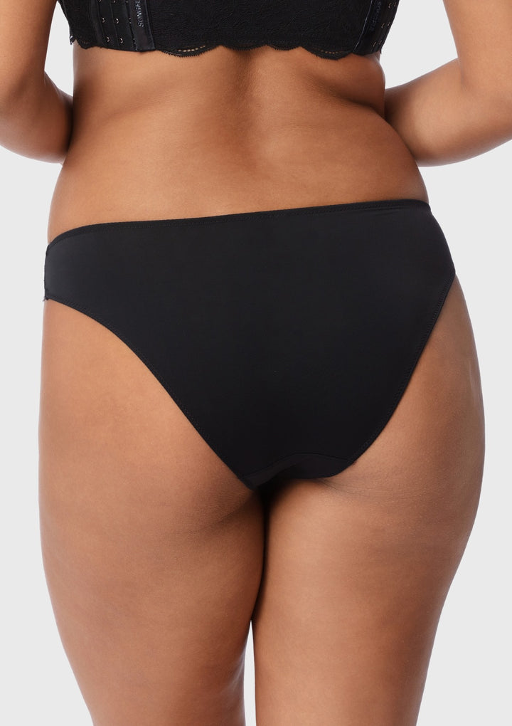 Whether for everyday wear or special occasions, these briefs exude a seamless fusion of sophistication and comfort, allowing you to feel confident and stylish from the inside out. Embrace both comfort and style with our Blossom Mist Smooth Black Lace Trim High-Rise Brief Underwear.