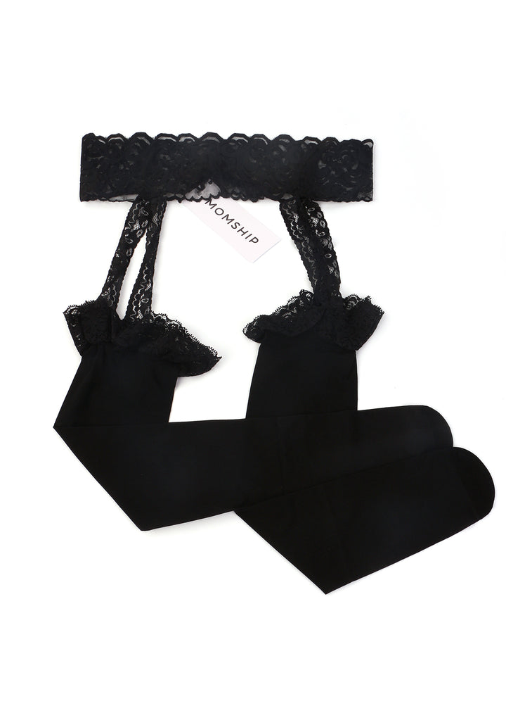 Second Skin:Crafted from silky fabric, these garter tights hug your legs like a second skin, providing a sheer finish with a chocolate-like softness. The lace detailing is double-stitched for durability, ensuring a soft and non-restrictive fit.