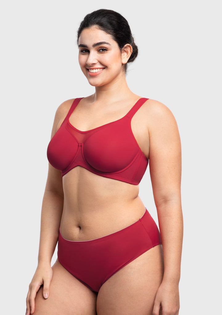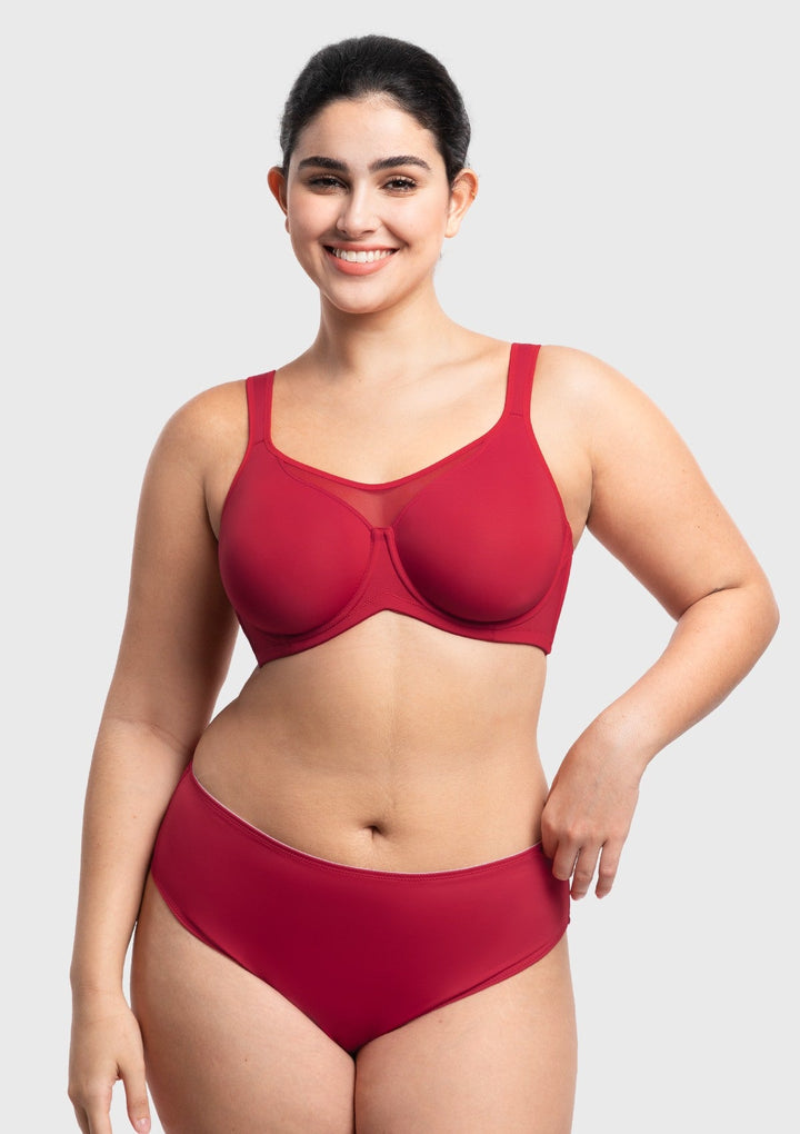 We stand behind our products. If you don’t love it, exchanges and returns are FREE for 30 days.CoolComfort Smoothing Unlined Underwire Minimizer Bra