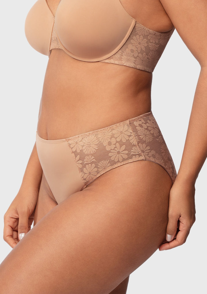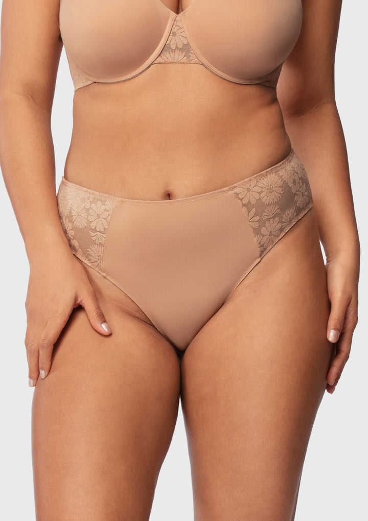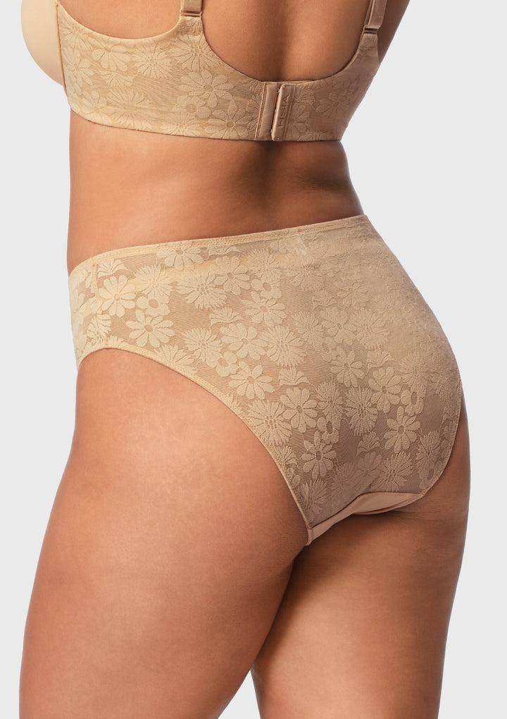 Daisy Smooth Lace High-Rise Natural Nude Mesh Lace Back Brief Underwear