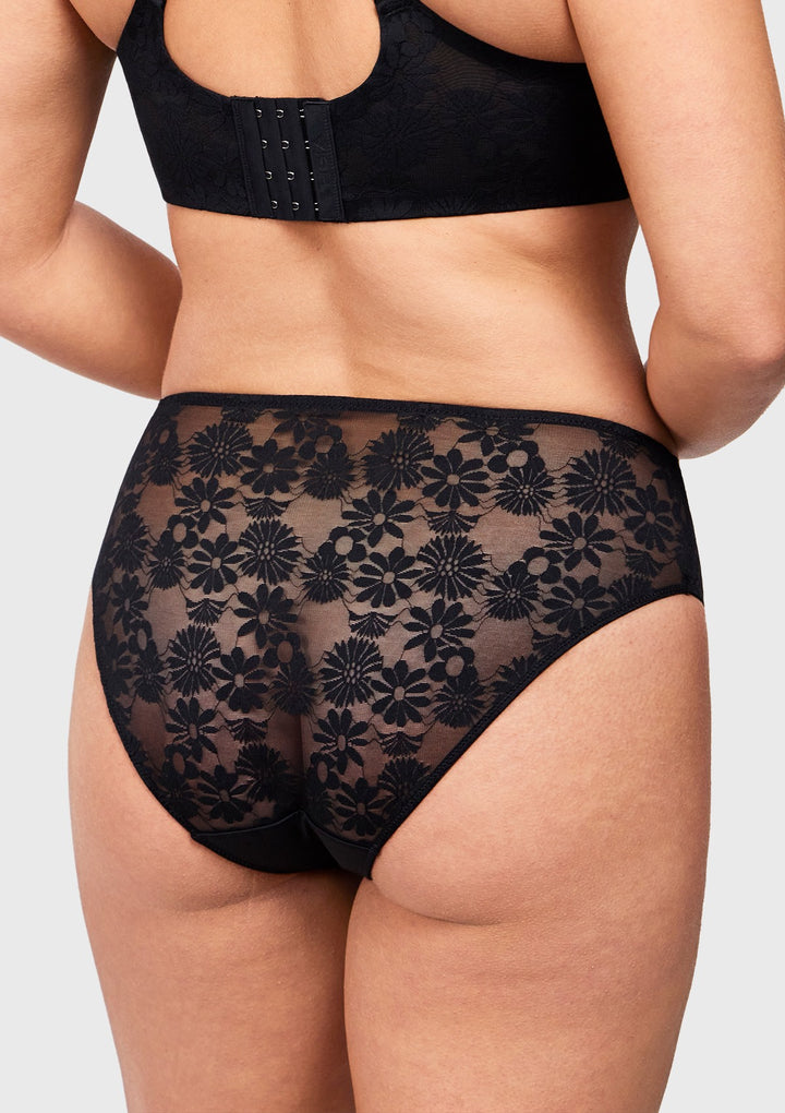 We stand behind our products. If you don’t love it, exchanges and returns are FREE for 30 days.Our High-Rise Lace Floral Panty is the perfect match to our Daisy Collection Underwire Bra. Made from delicate floral lace, this panty flatters your curves while providing ultimate comfort. The intricate lace pattern adds elegance and romance. Soft and stretchy materials provide a comfortable fit that moves with your body. Whether you're looking to add some romance to your lingerie collection or complete the set, our Daisy High-Rise Lace Floral Panty is a must-have. Feminine and flattering, this panty is perfect for any lingerie lover.