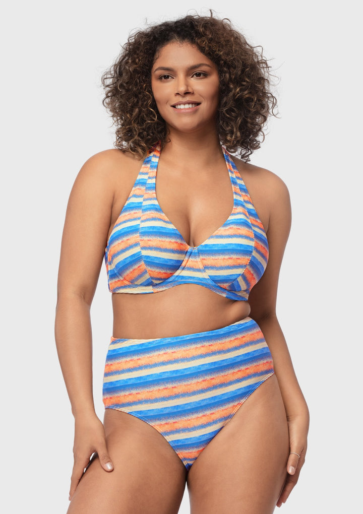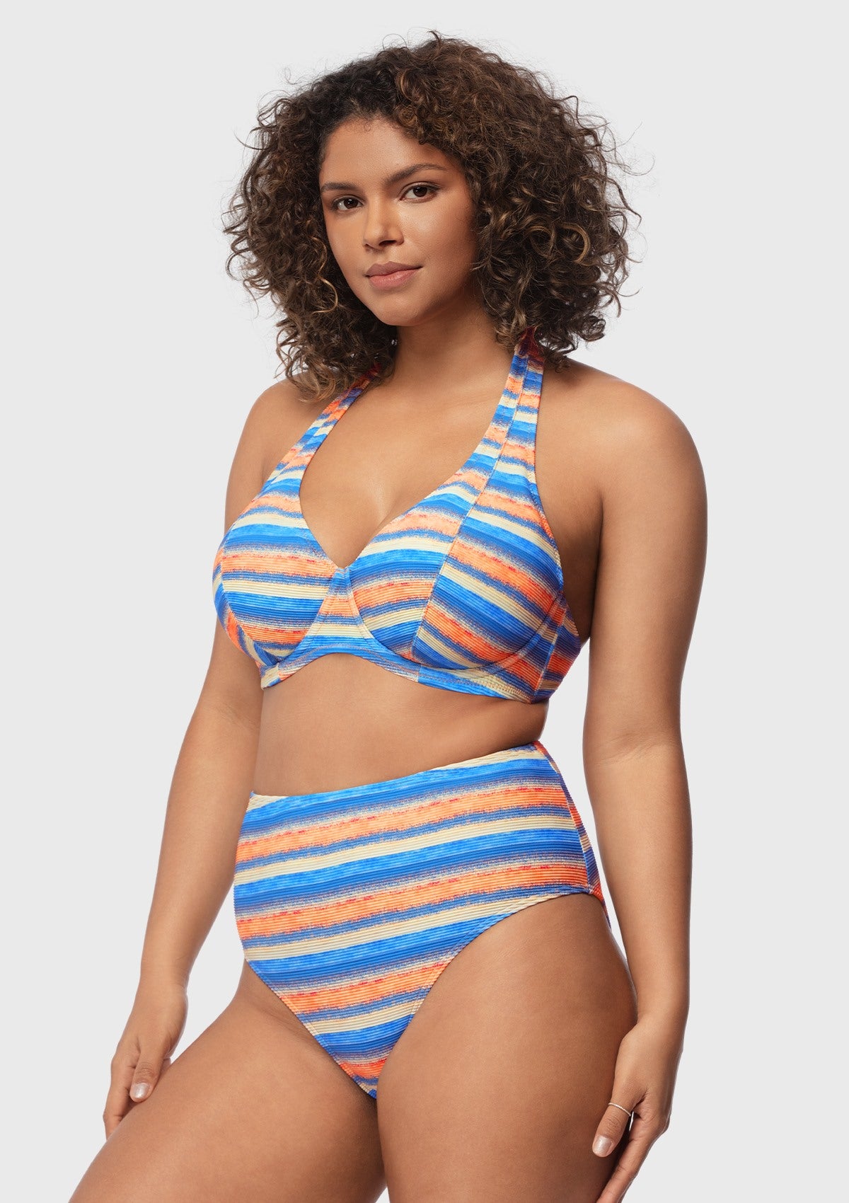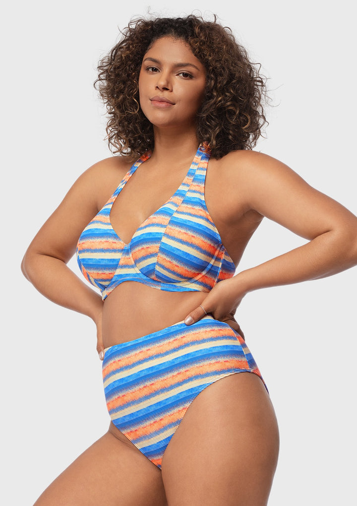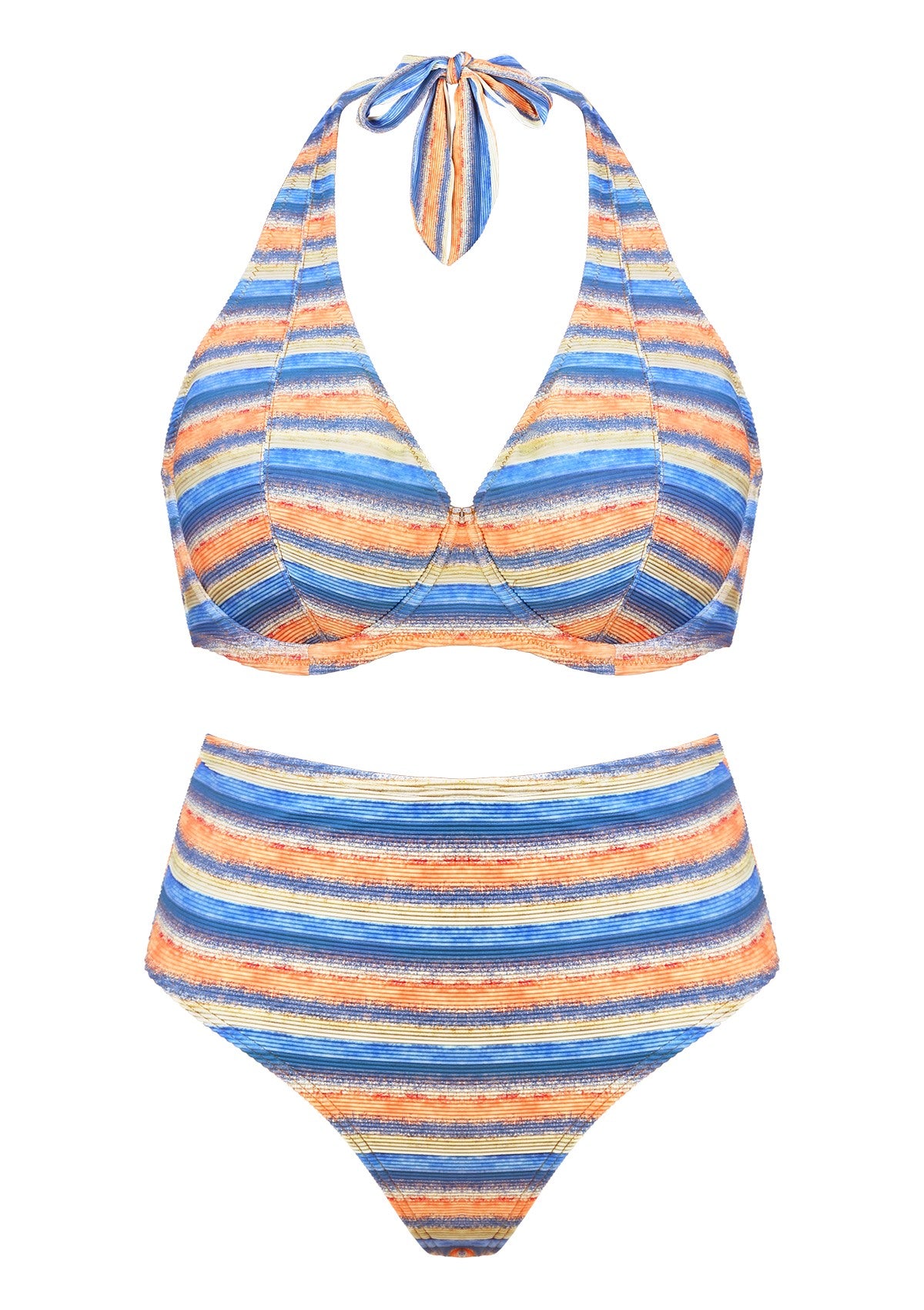 Experience the ultimate blend of support and comfort with our latest two-piece textured swimwear. Just like our beloved bras, this swimwear features underwire cups that provide exceptional support while ensuring your comfort. The halter design adds femininity to your swim style. Embrace the perfect balance of functionality and sensuality.