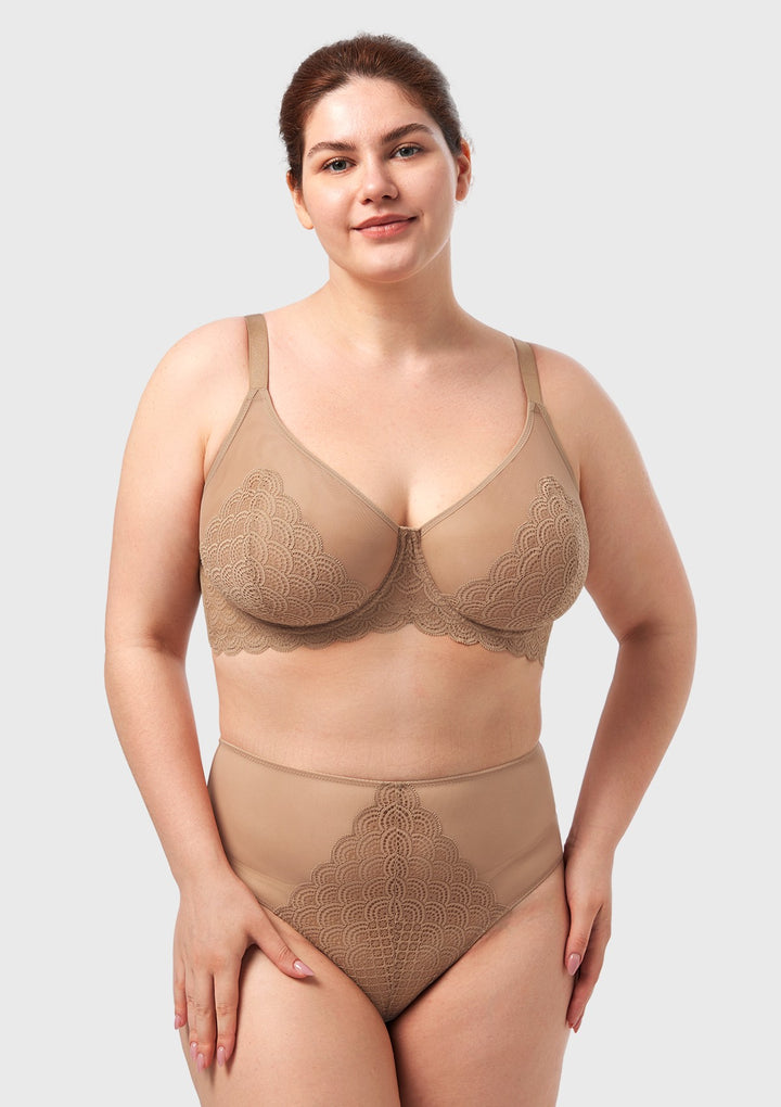 (Cardi B recommends)Mermaid Scales Lace Beige Brown Unlined Bra