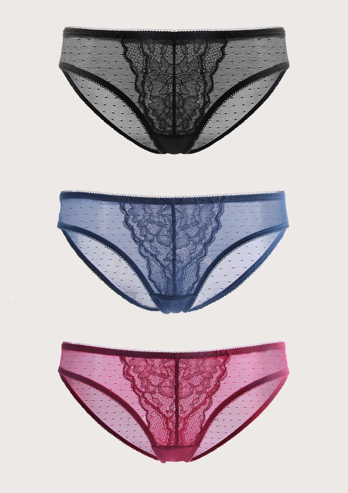 HSIA HSIA Petal Vine Lace Panties 3 Pack S / White+Dark pink+Light Gray