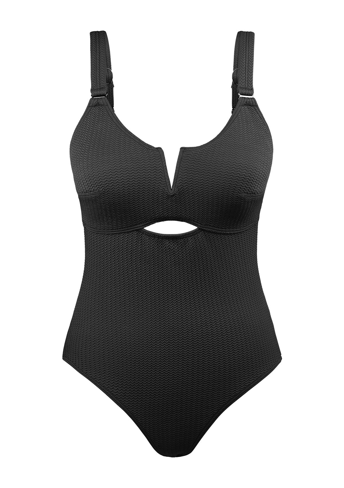 V-wire Plunge Textured One-piece Cutout Swimsuit