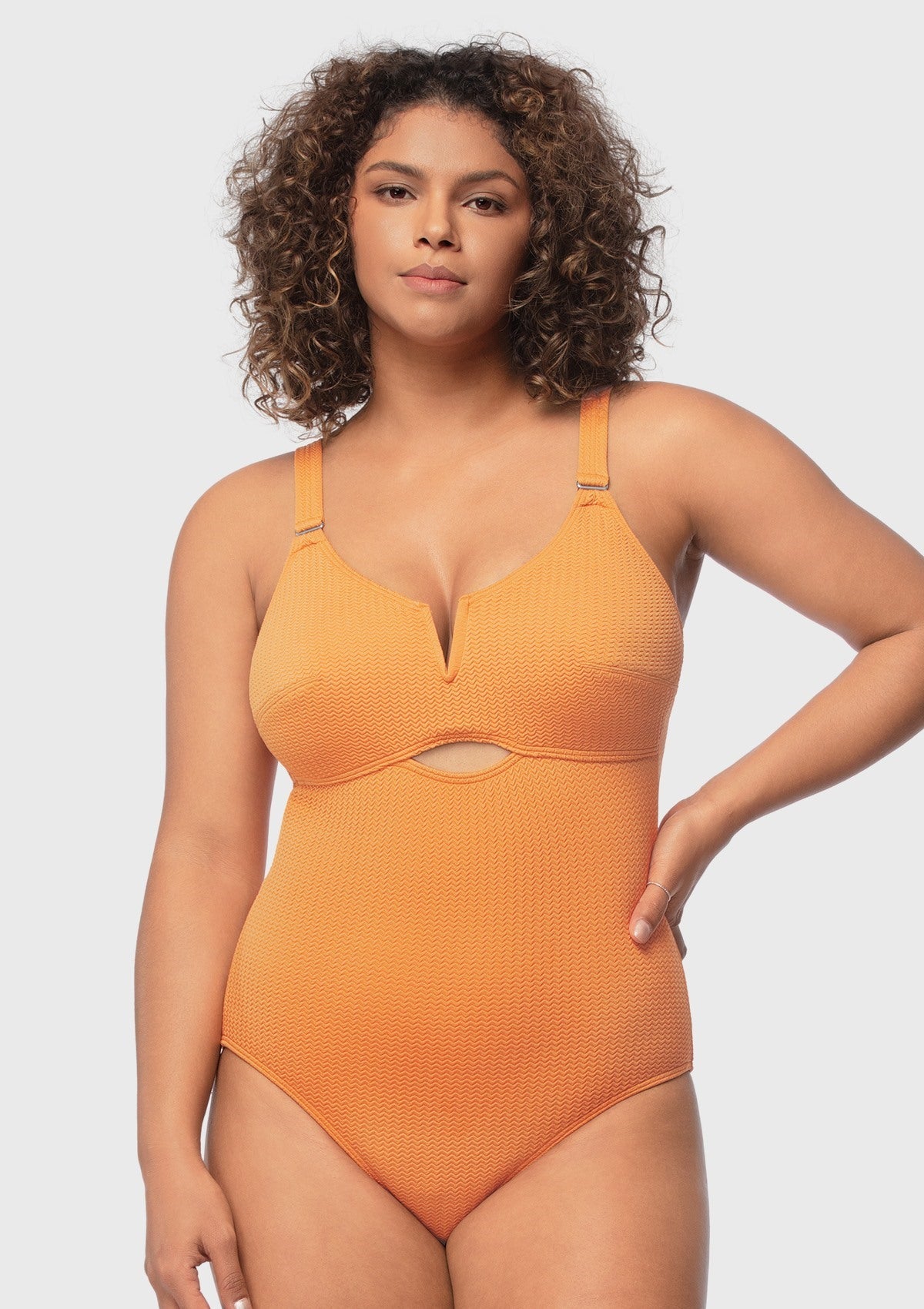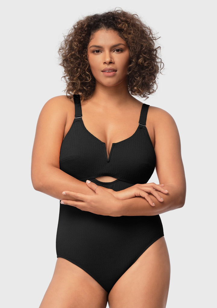 Experience the ultimate blend of support and comfort with our latest one-piece textured swimwear. Just like our beloved bras, this swimwear features no-wire cups that provide exceptional support while ensuring your comfort. The addition of a V-wire plunge and cutout adds femininity to your swim style. Embrace the perfect balance of functionality and sensuality.