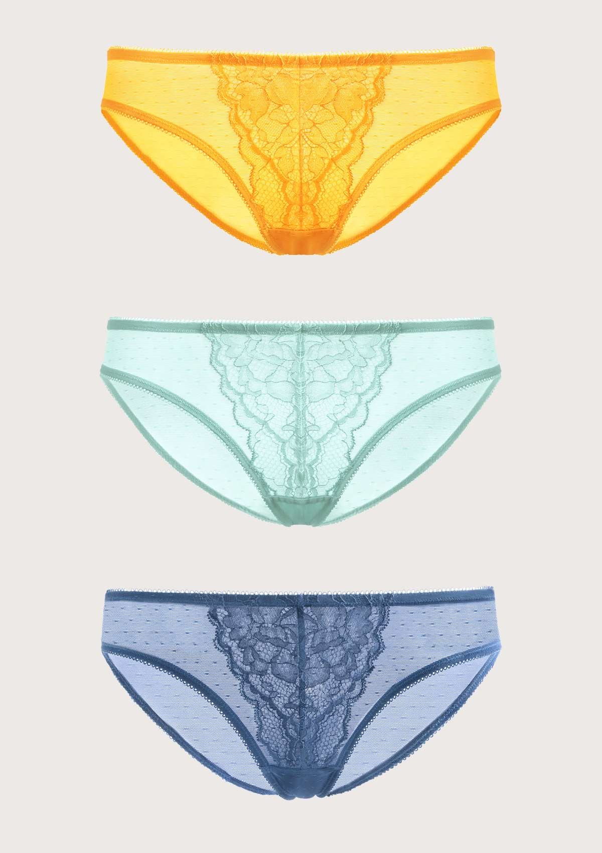 HSIA HSIA Petal Vine Lace Panties 3 Pack S / Denim Blue+Cadmium Yellow+Crystal Blue