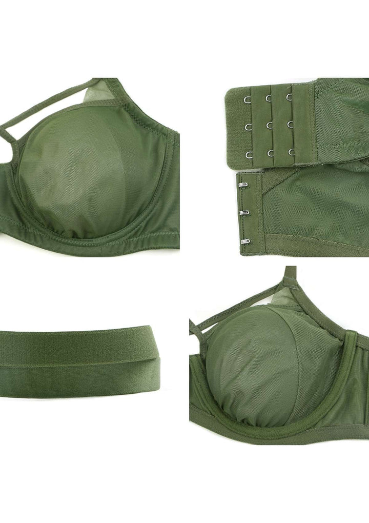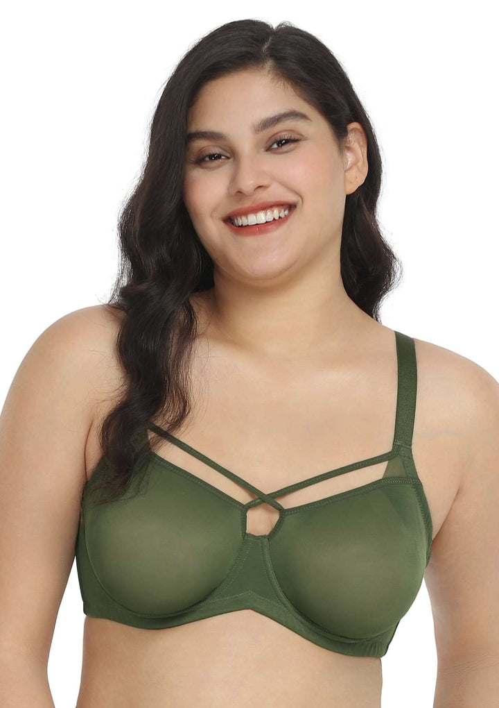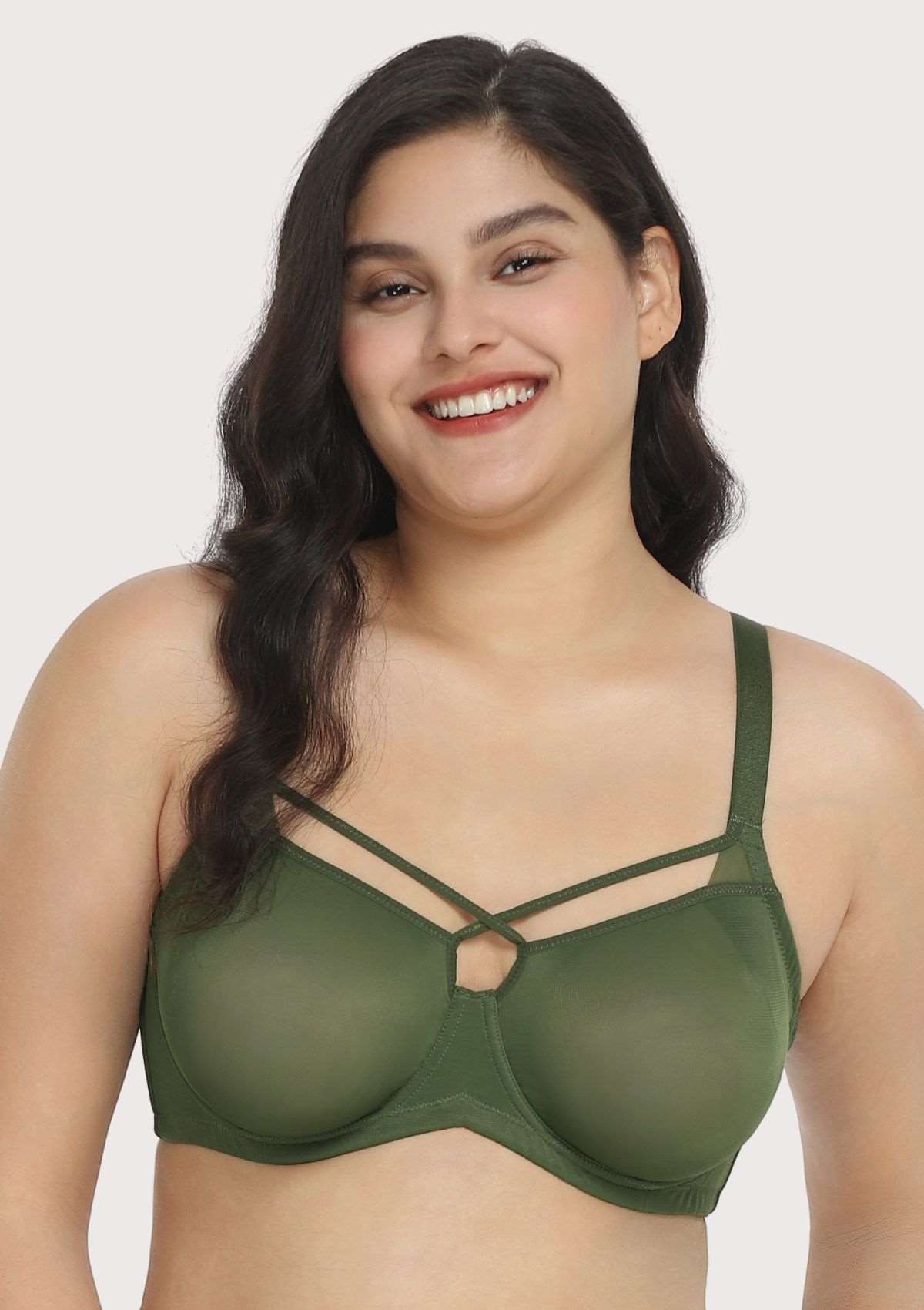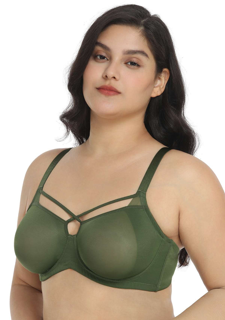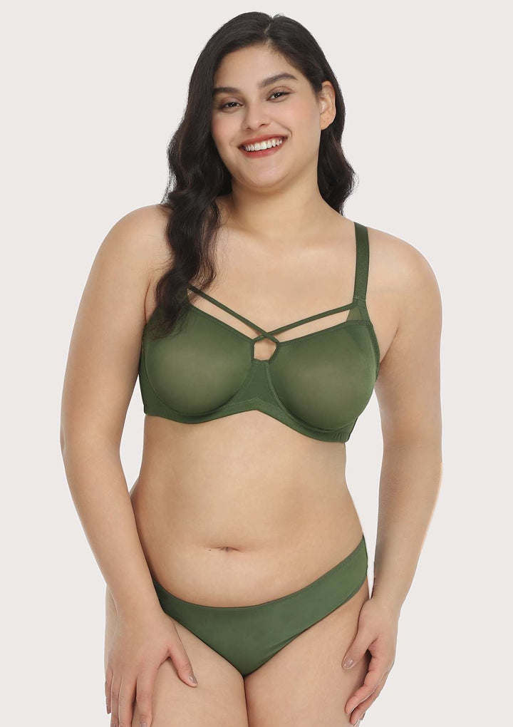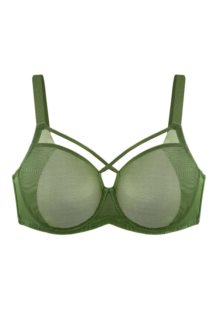Billie Cross Front Strap Dark Green Smooth Sheer Mesh Underwire Bra