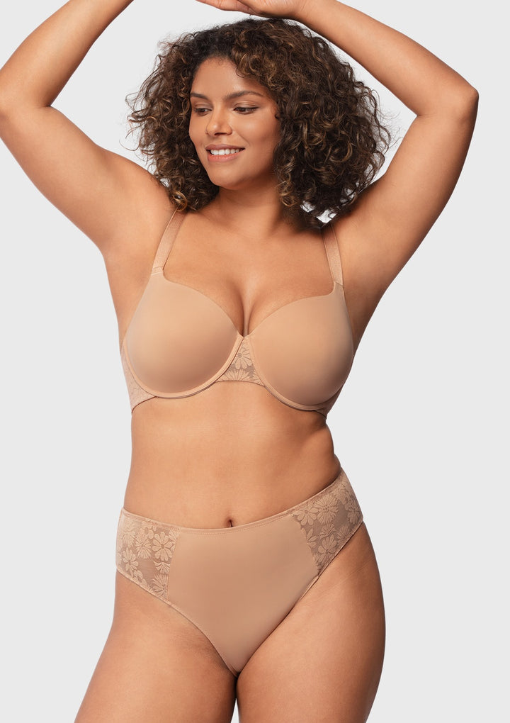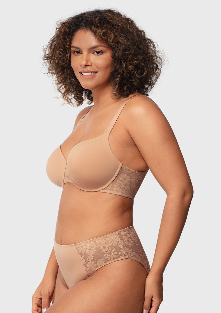 We stand behind our products. If you don’t love it, exchanges and returns are FREE for 30 days.Introducing the Daisy Smooth Lace Lightly Padded Racerback Underwire T-shirt Bra, a versatile and supportive option for your everyday wear. This bra combines the support of an underwire with extra coverage and a flattering floral lace racerback design. Lightly padded cups provide shaping where needed and offers just the right amount of support.