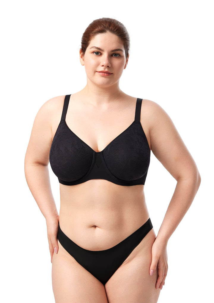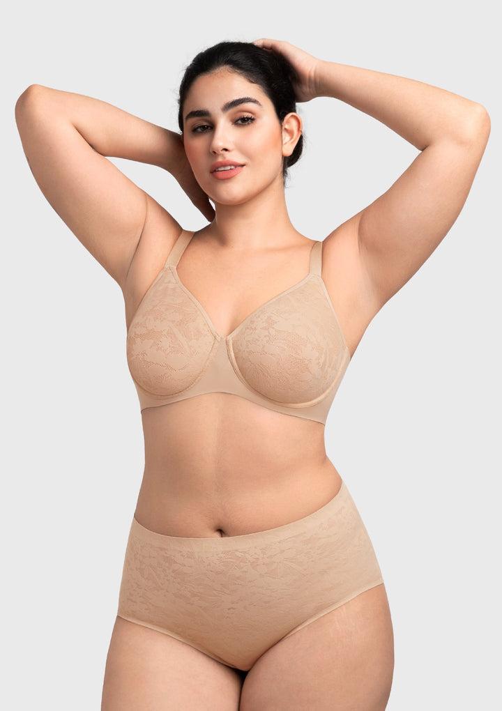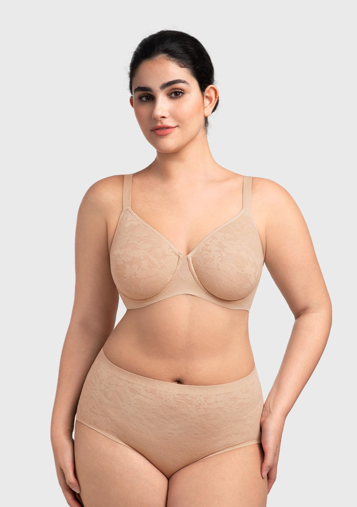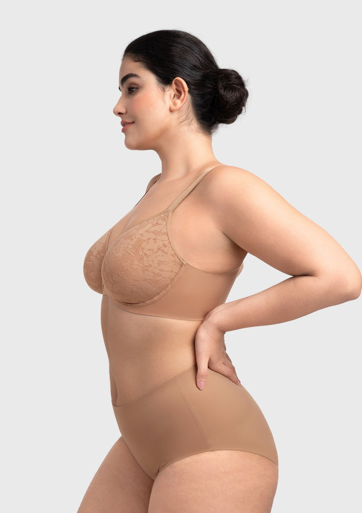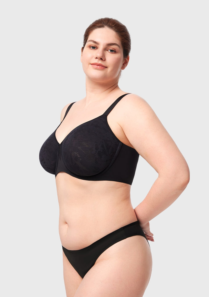 Full coverage lace cups are integrated with a supportive underwire and soft mesh. This combination delivers natural, reliable shaping and lasting comfort. Invisible Seamless FitFeaturing bonded edges and seamless construction for a completely smooth look under any clothing. The design eliminates lines and bulges for a perfect silhouette.