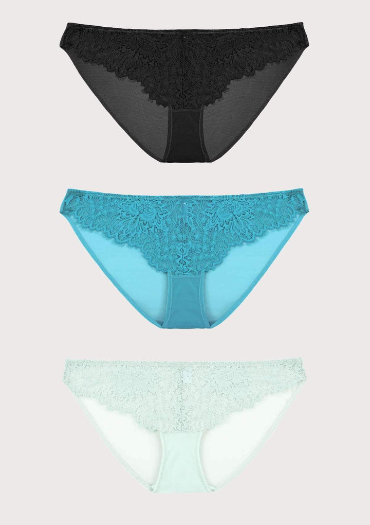 HSIA HSIA Sunflower Exquisite Sexy Lace Panties 3 Pack S / Black+Horizon Blue+Crystal Blue