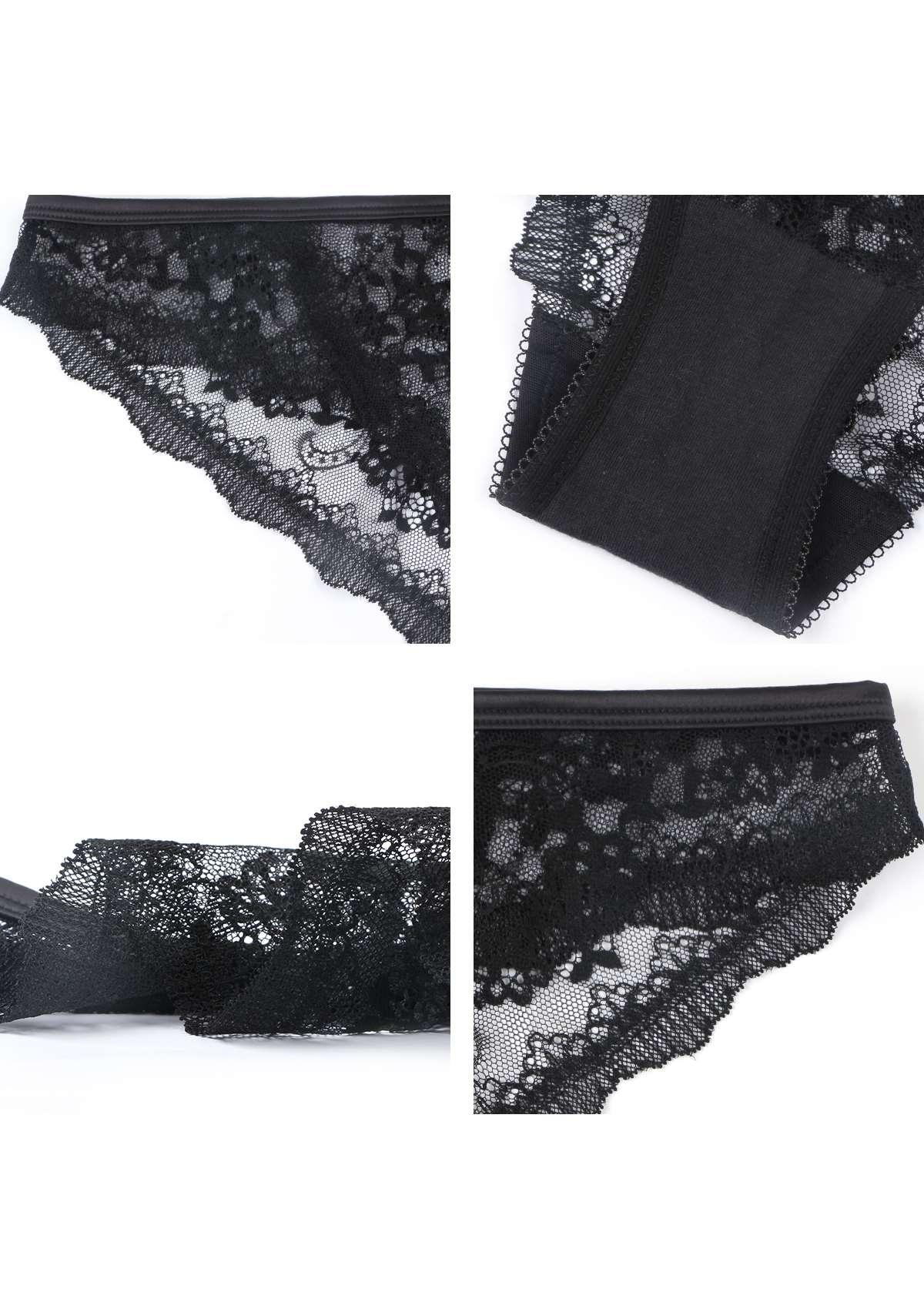 HSIA Floral Bridal Lace Back Black Bikini Underwear