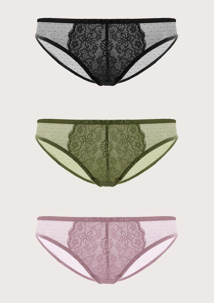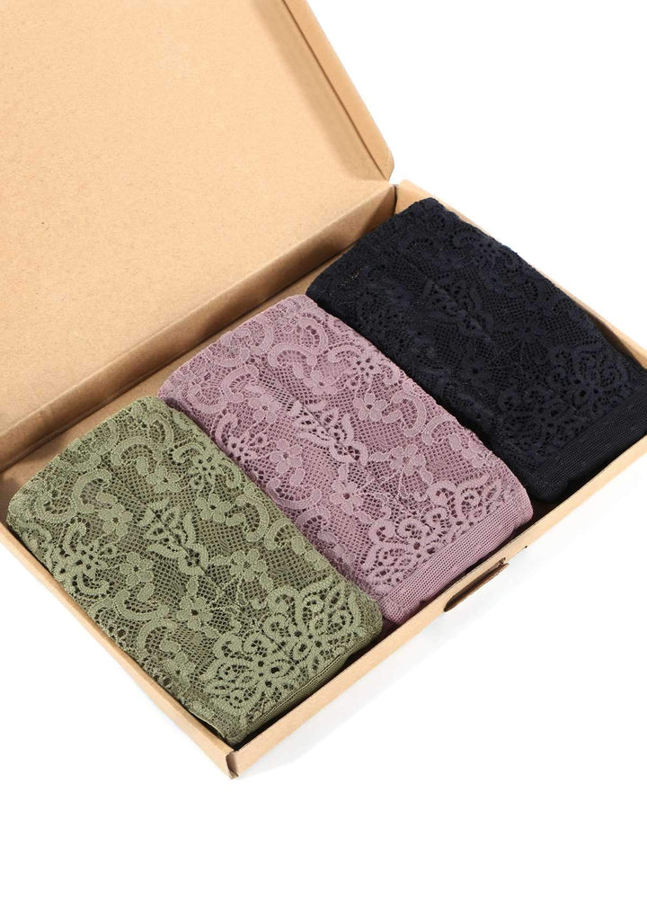 HSIA HSIA Front Floral Lace Hipsters 3 Pack S / Black+Dark Green+Purple