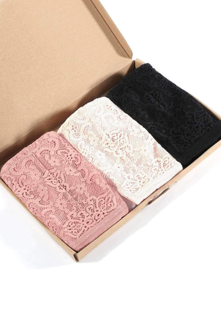HSIA HSIA Front Floral Lace Hipsters 3 Pack S / Black+Light Coral+Dusty Peach