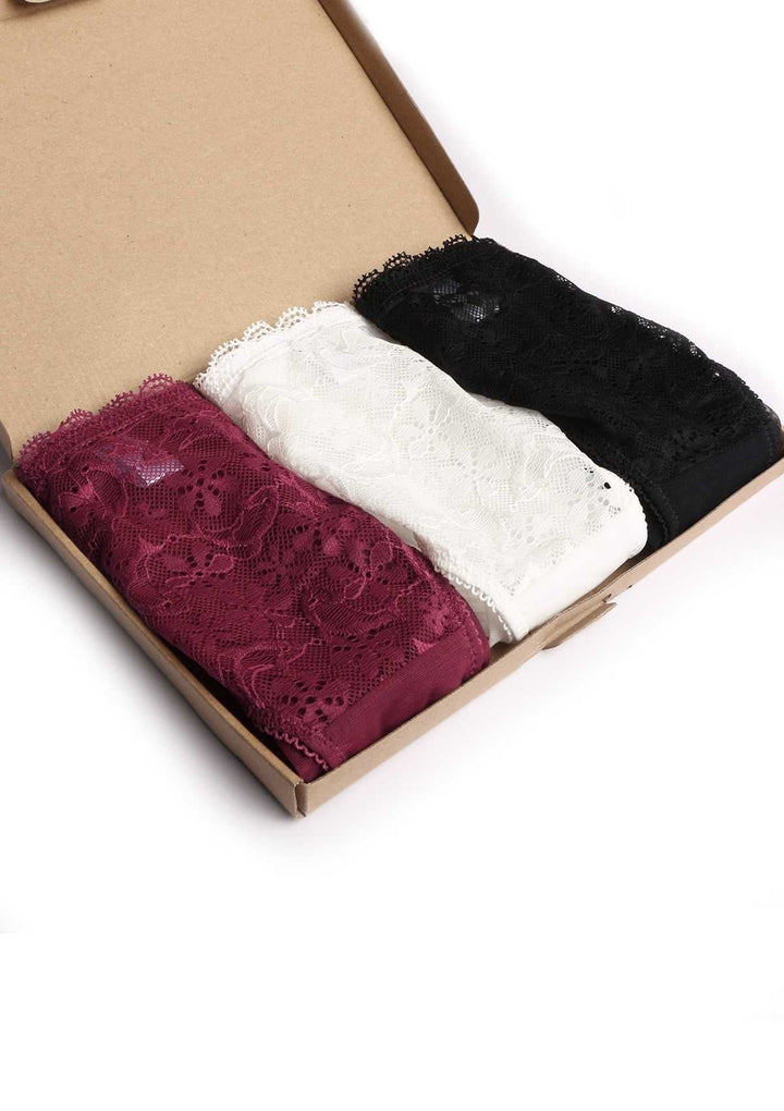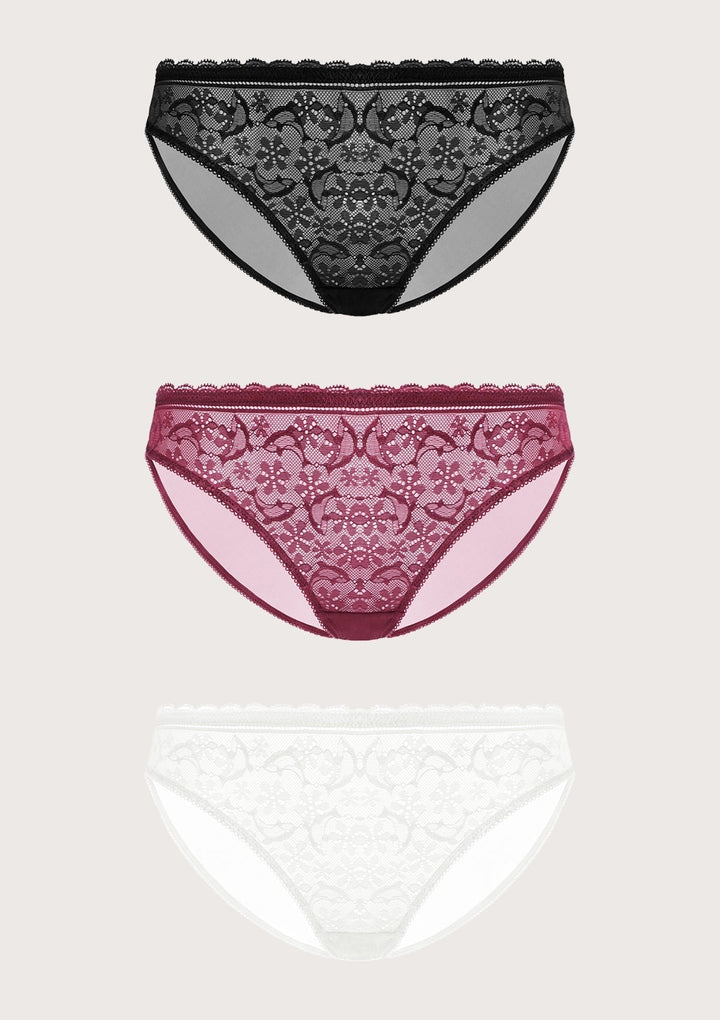 HSIA HSIA Lace Dolphin Panties 3 Pack S / Black+Burgundy+White