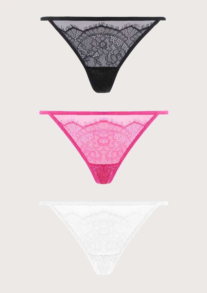 HSIA HSIA Mesh Eyelash Lace Thongs 3 Pack S / Black+Pink+White