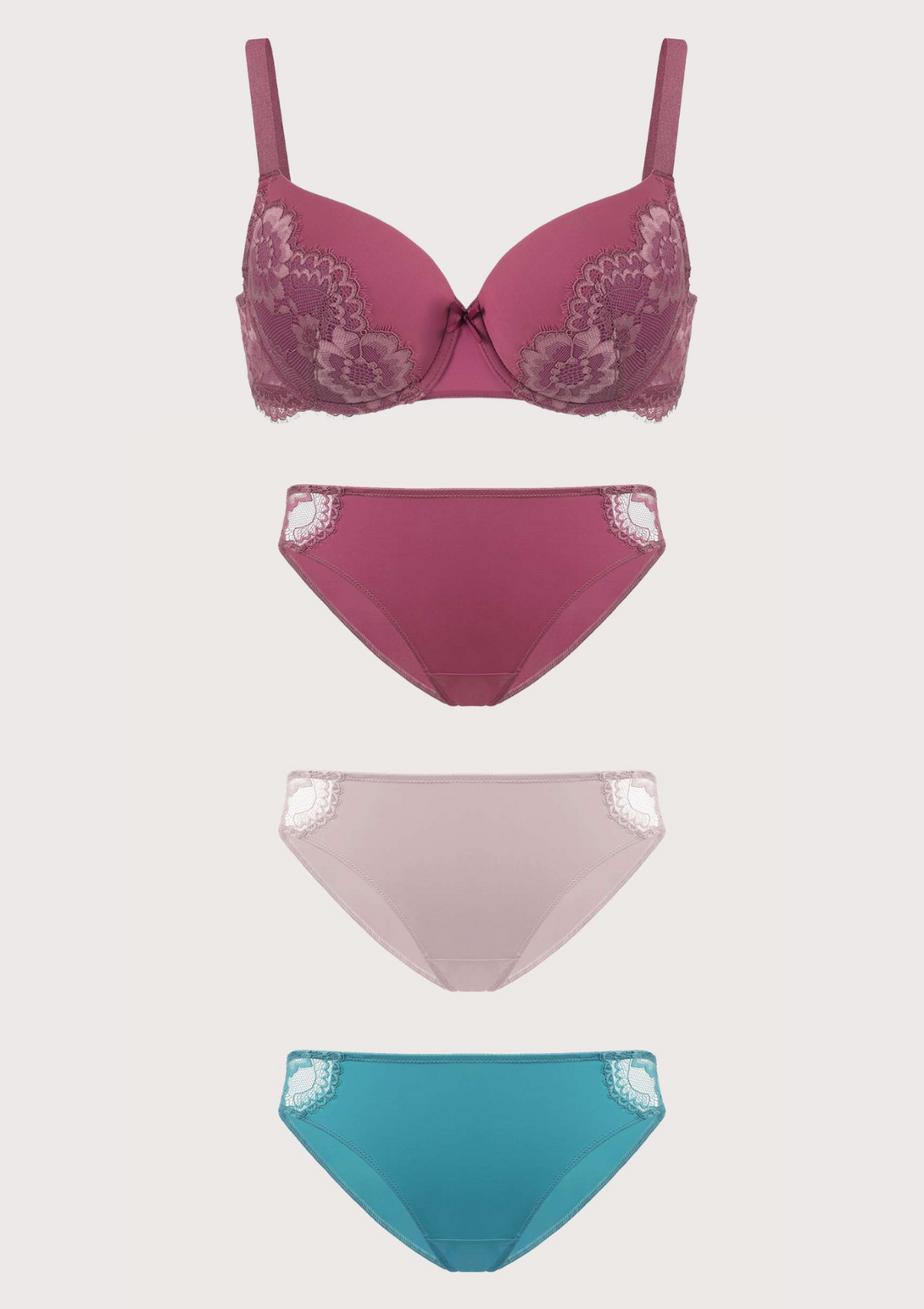 Lovelush Flower Trim Padded Underwire Bra Bundle
