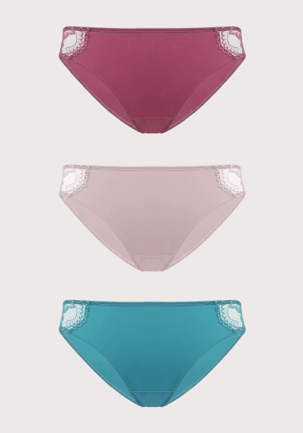 HSIA HSIA Lace Flower Trim Panties 3 Pack S / Crimson+Pink+Crystal Blue HSIA Lace Flower Trim Bikini Panties 3 Pack