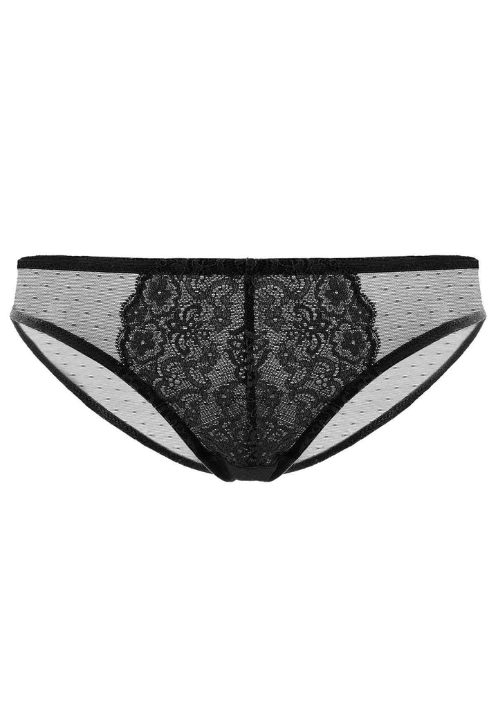 Nymphaea Front Floral Black Lace Bikini Underwear