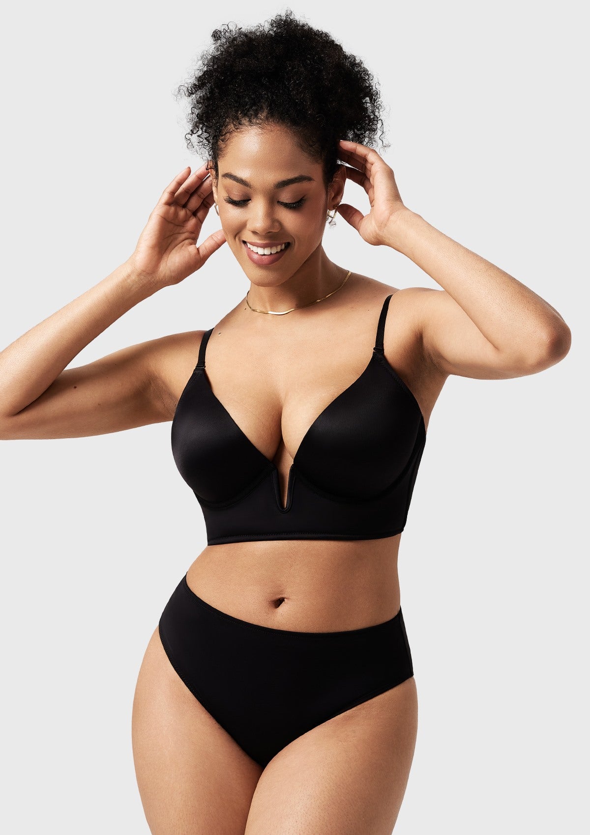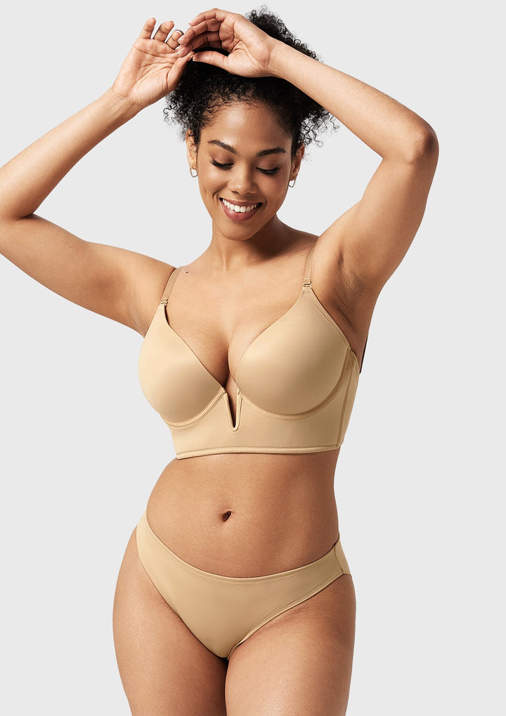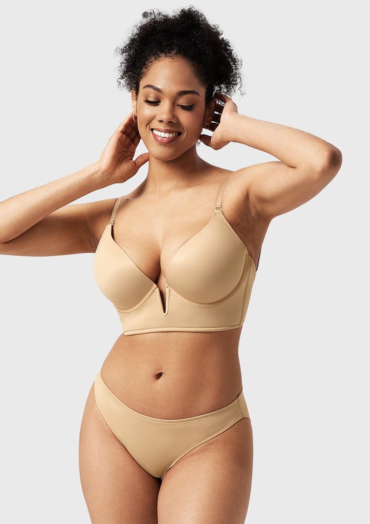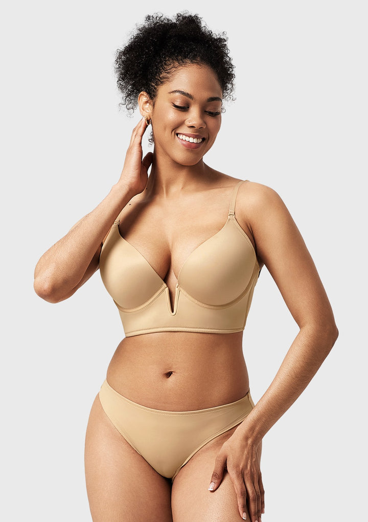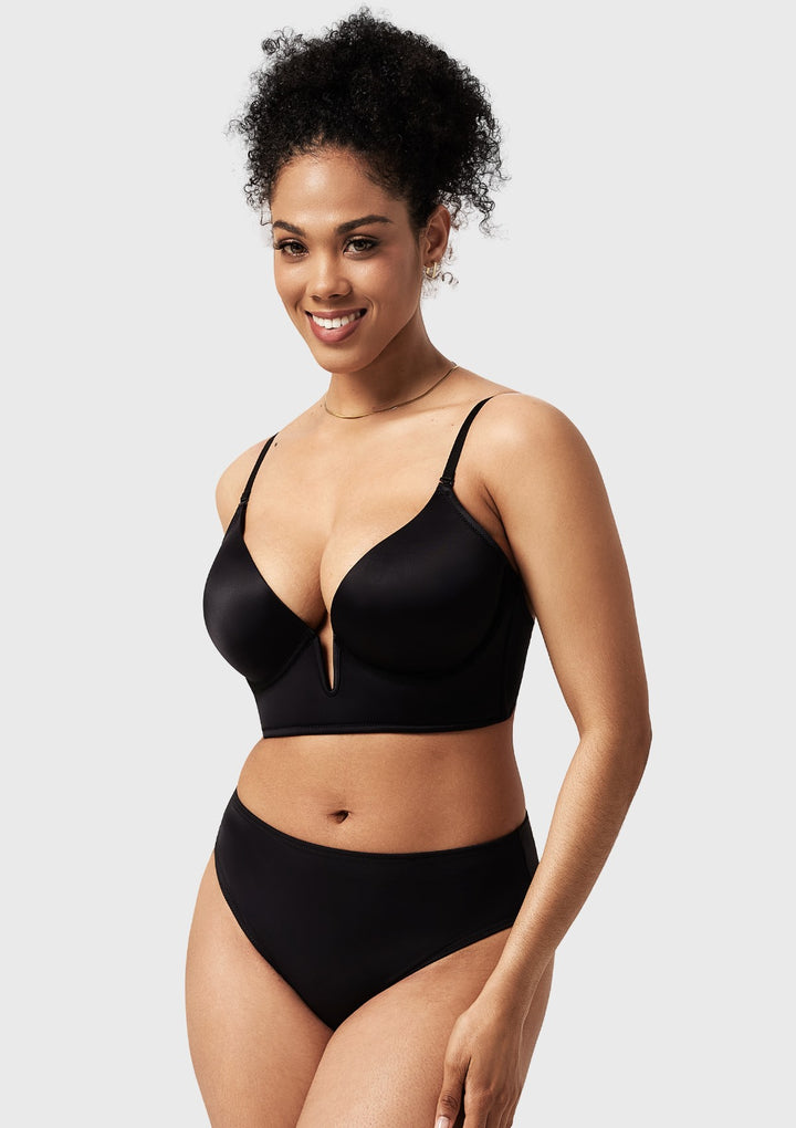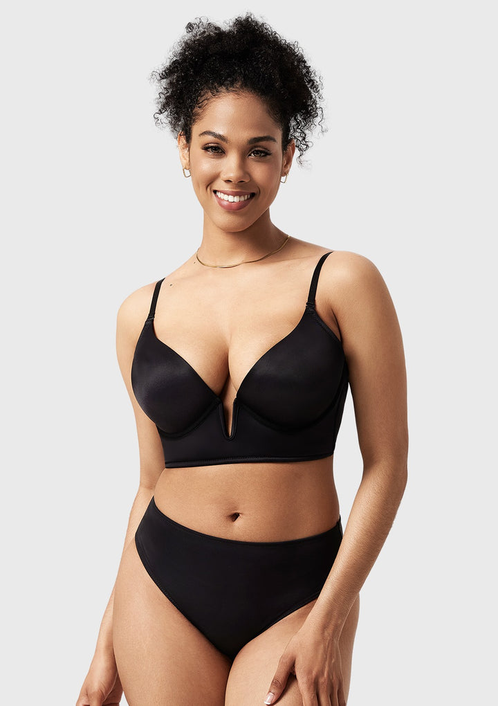 • Deep V with Push-Up Cups: Sexy and fashionable design that provides excellent lift and cleavage enhancement.